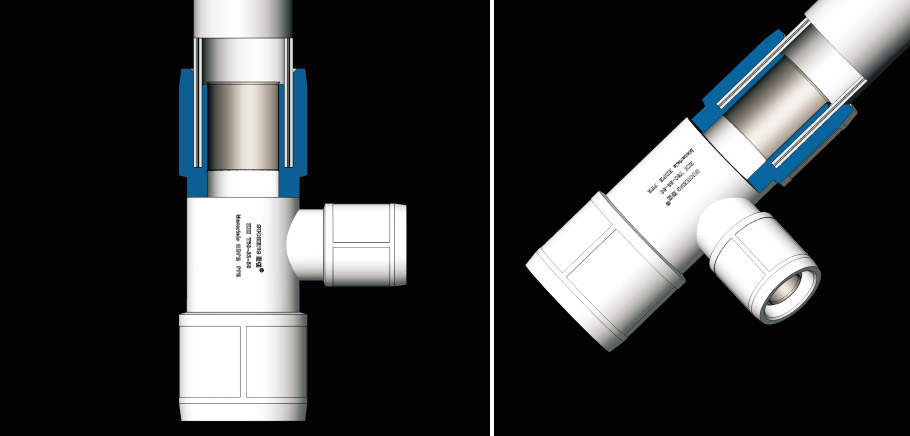 區(qū)別于大部分友商的雙熱熔管件,國恒雙熱熔管件在DN63以上規(guī)格,均內(nèi)置有開口彈力襯套(材質(zhì):高強度不銹鋼),這一項設(shè)計是PSP安裝過程中,工作效率與安裝安全性的有效保障。